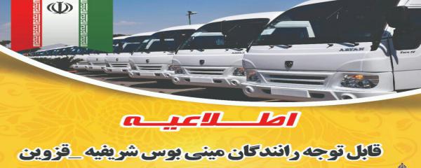اطلاعیه قابل توجه رانندگان مینی بوس شریفیه – قزوین
