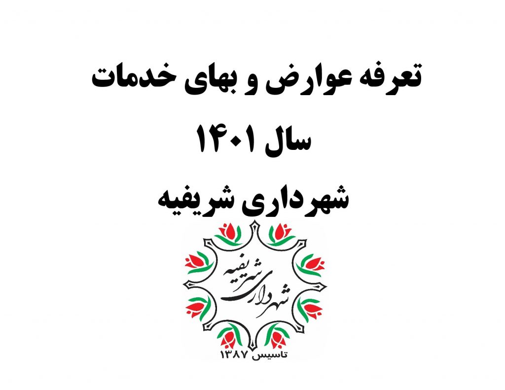 تعرفه عوارض و بهای خدمات سال ۱۴۰۱ شهرداری شریفیه اینجا کلیک نمائید