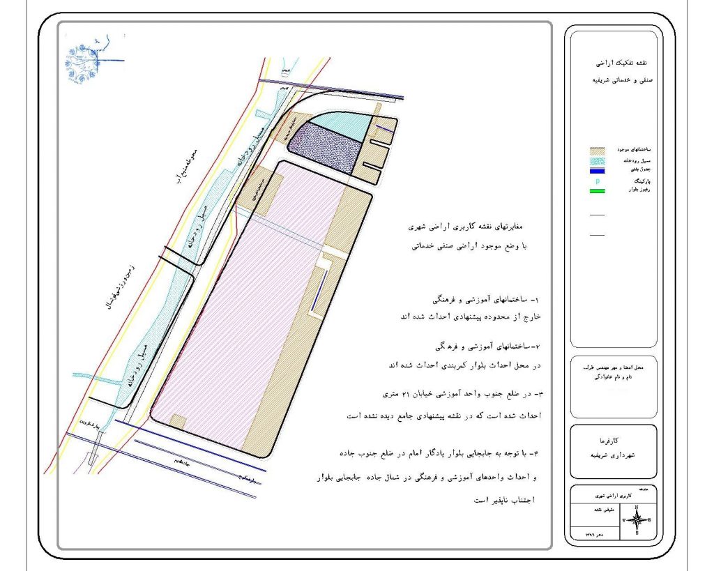 ارضي صنفي – خدماتي به مساحت حدود ۵ هكتار در ضلع شمال غربي شريفيه واقع شده است. شهرداري با مجوز شوراي اسلامي شهر اقدام به تهيه طرح تفكيك اراضي مذكور نموده است. نقشه هاي اين طرح جهت اطلاع عموم مردم شريف بويژه مالكين و كارشناسان شهري در سايت شهرداري قرار داده شده است. علاقمندان ميتوانند…